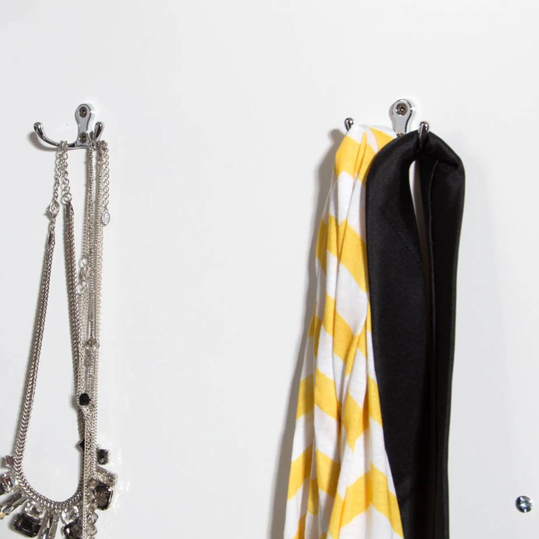 -2 hooks behind the door for hanging scarves, ties and other types of neckwear