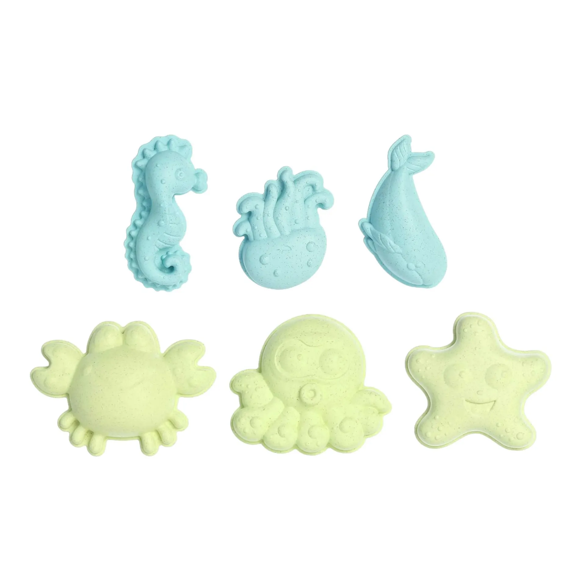 In addition to the water wheel, it comes with a spade, a watering can, a rake, and six unique sea life molds!