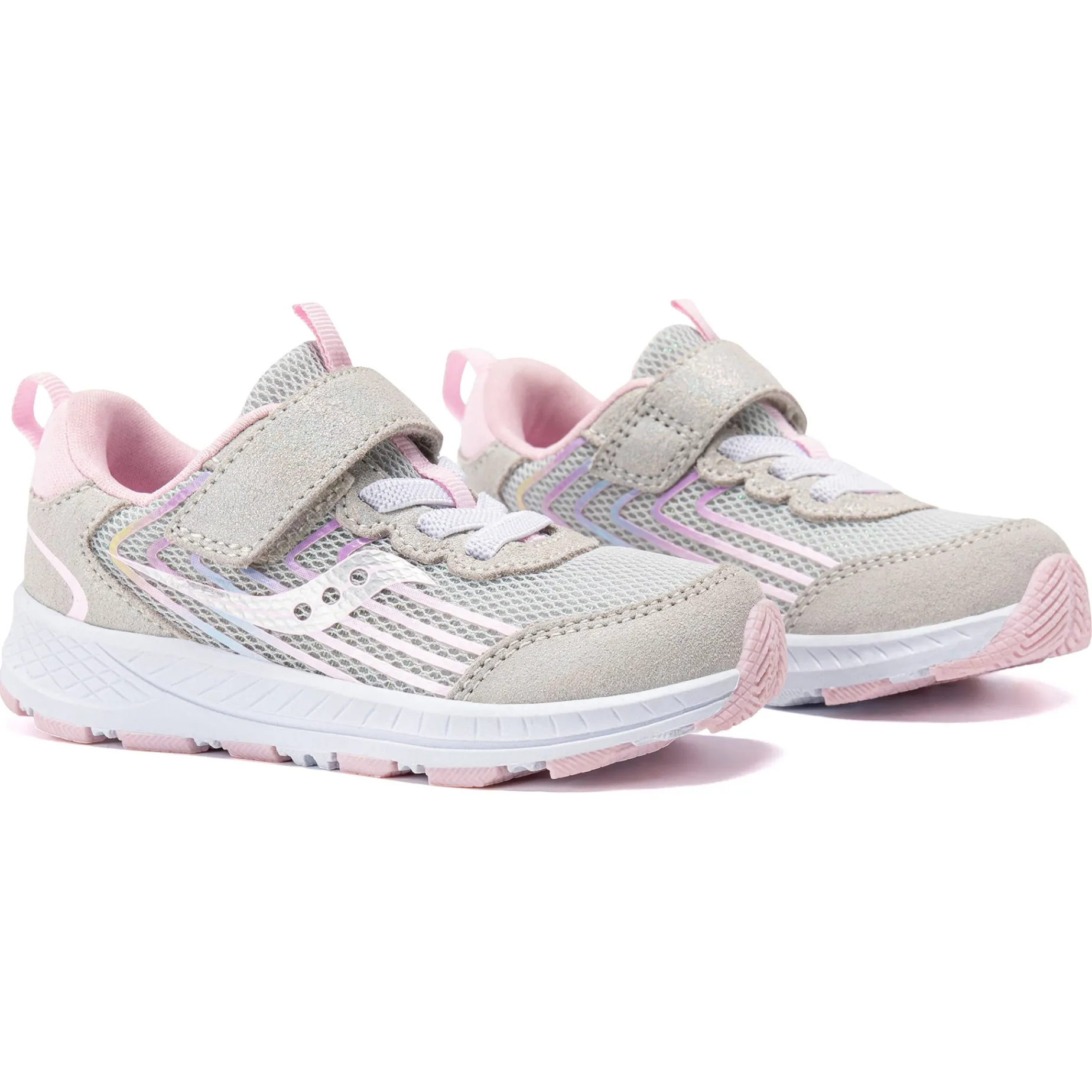 The Wind 3.0 junior sneakers are an updated version of a Saucony kid-favourite. Leather and mesh uppers are both breathable and durable, while grippy traction outsoles help kids stay steady on their feet. Easy for little ones to get on and off, these shoes provide underfoot support and cushioning to keep small feet comfy all day.