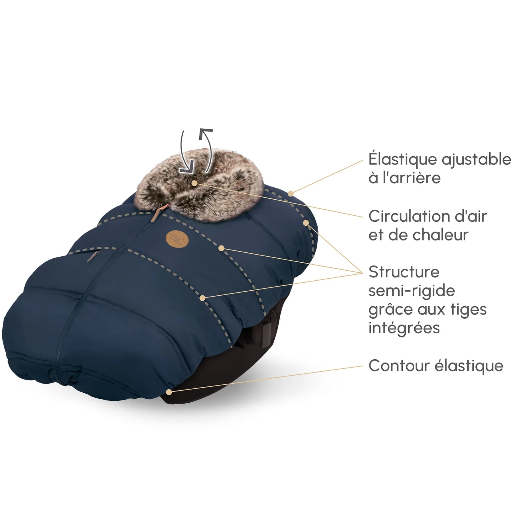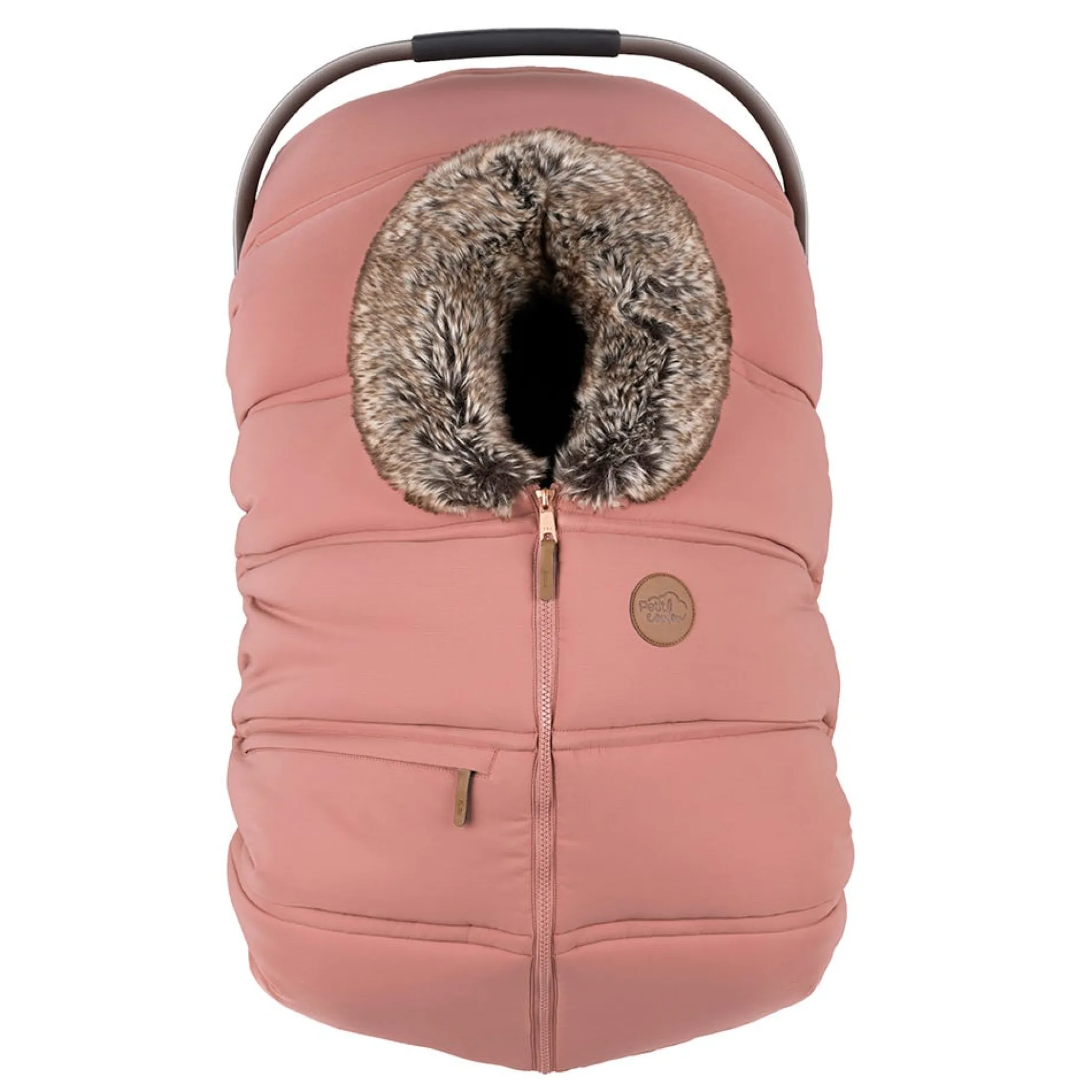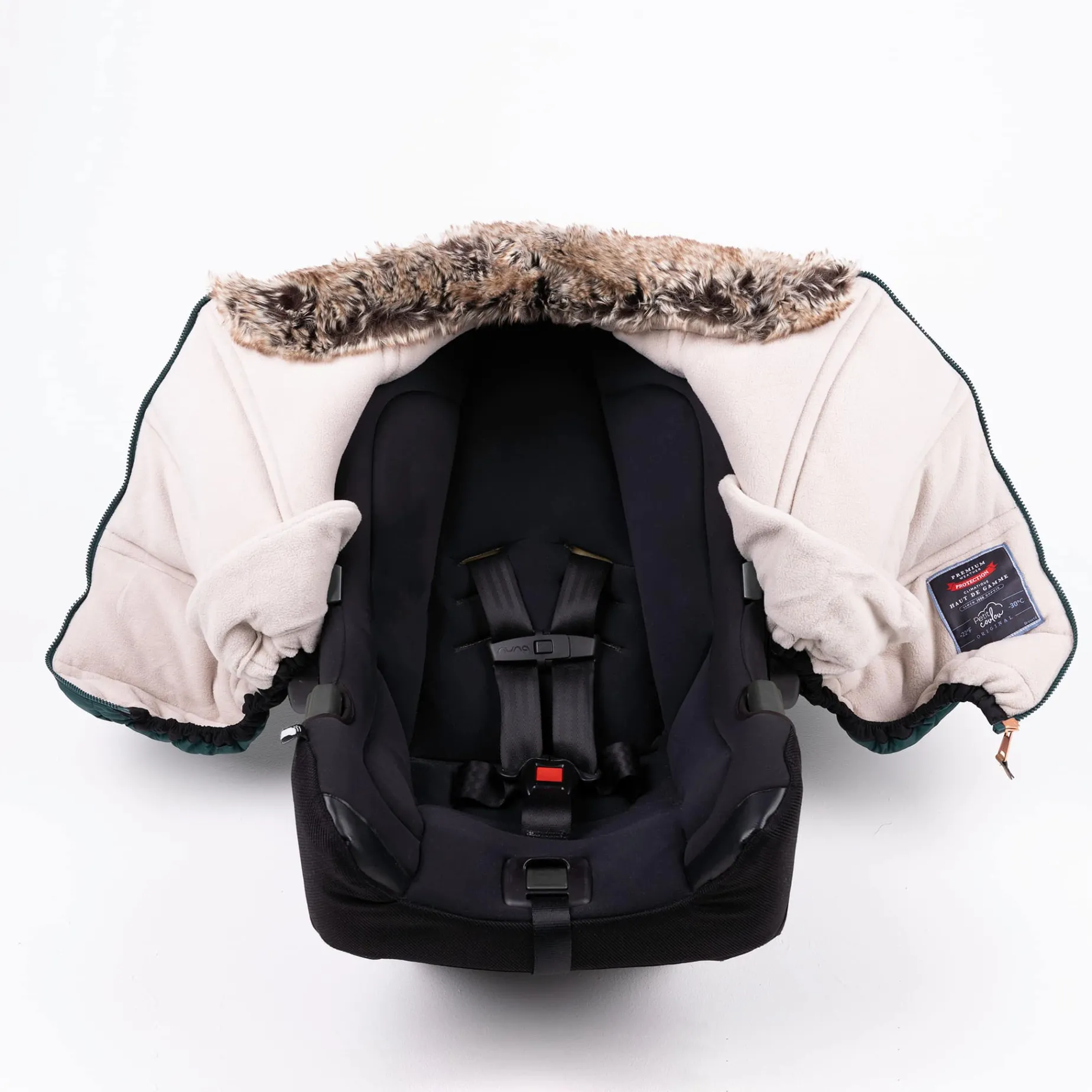 The Petit Coulou winter infant car seat cover is an essential accessory for parents of little ones. It fits all rear-facing car seats up to 35 LBS (16 KG) and can be easily removed with its specially designed elastic base.