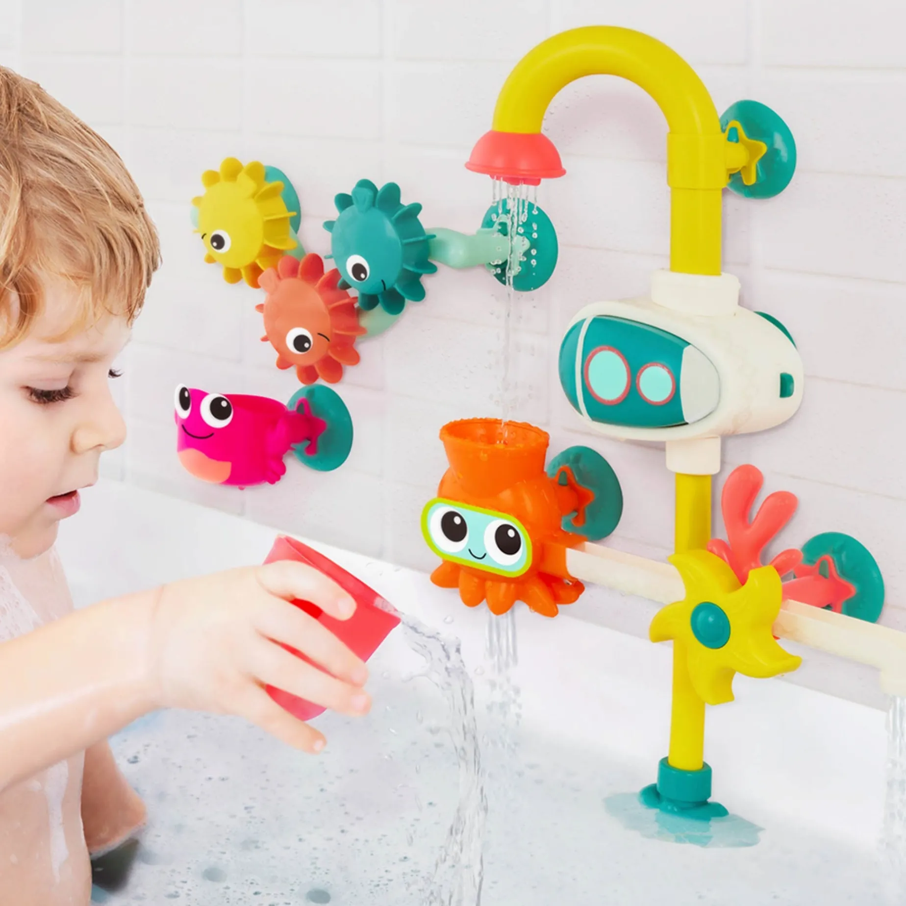 The B. ”Bath Toy” creates a playful atmosphere in the bathroom, while encouraging your child’s motor and sensory development. Give your child memorable and rewarding bath time with this imaginative and interactive toy.