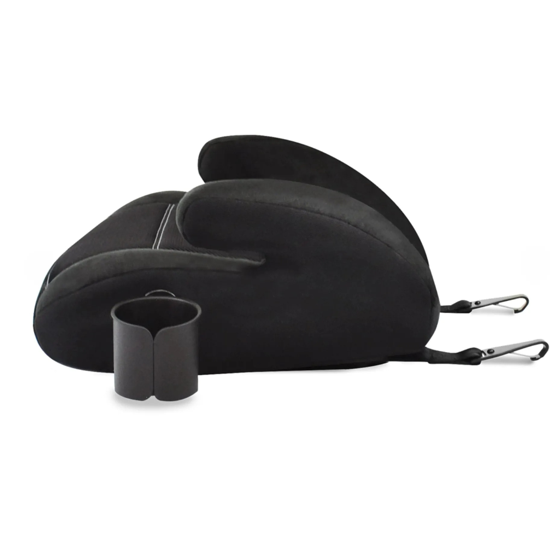 The unique V-shaped, smooth-contoured seat design protects your car’s upholstery and is a much-needed space-saver allowing a better fit in any type of vehicle and easy access to the seat belt.
