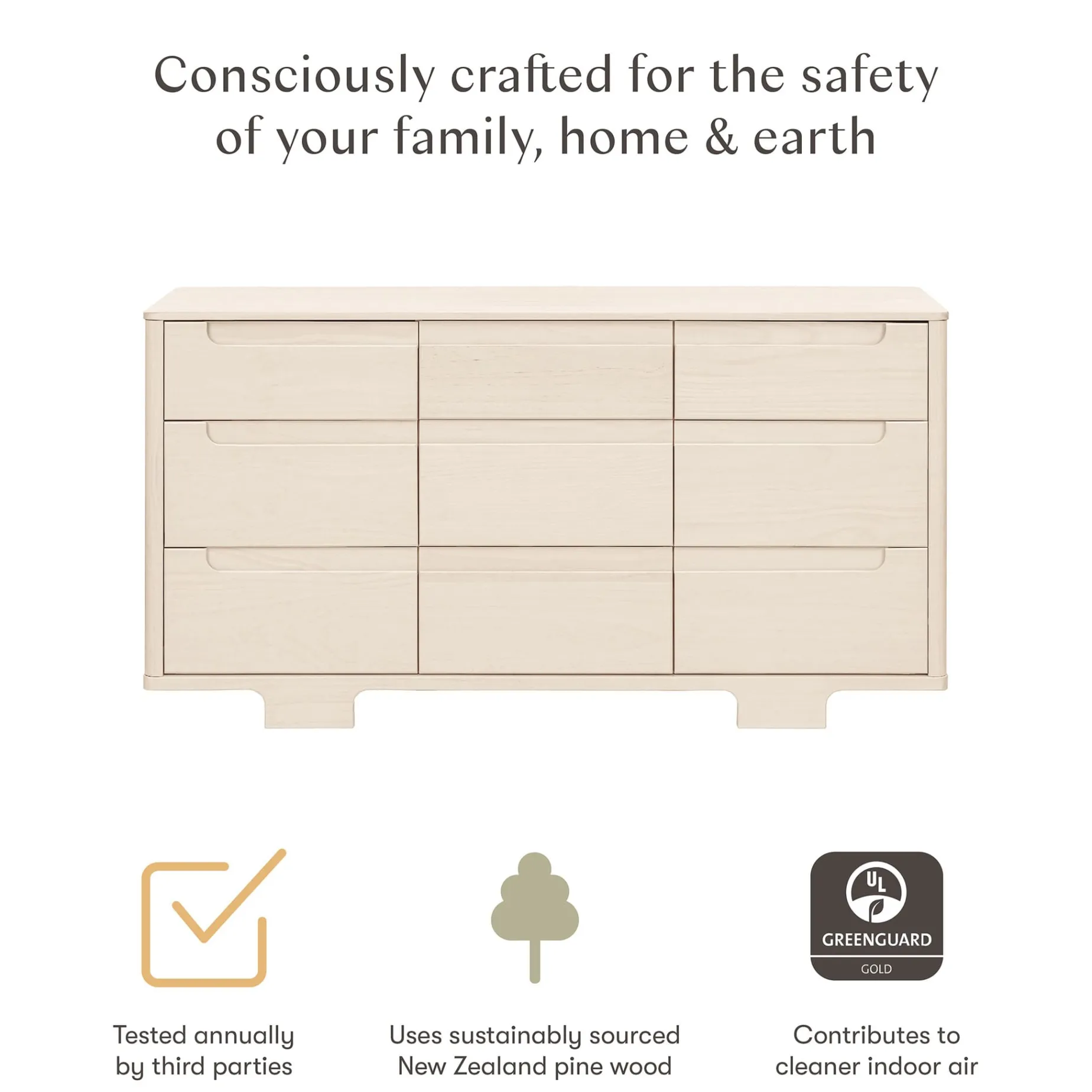 Designed to complement the Yuzu 8-in-1 All-Stages Crib, the Yuzu 9-Drawer Dresser marries form and function with playful arched feet, gently curved corners and plenty of storage with 9 spacious drawers. Whether you’re going for a classic, modern, or eclectic look, this versatile dresser is a perfect statement piece in the nursery. Best of all, the Yuzu 9-Drawer Dresser arrives fully assembled, ready to store all of babe’s clothing and necessities.